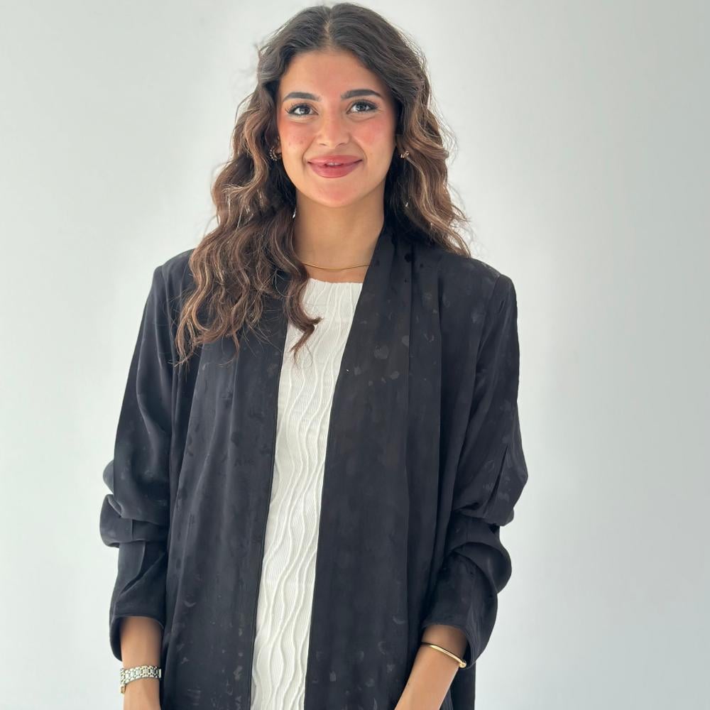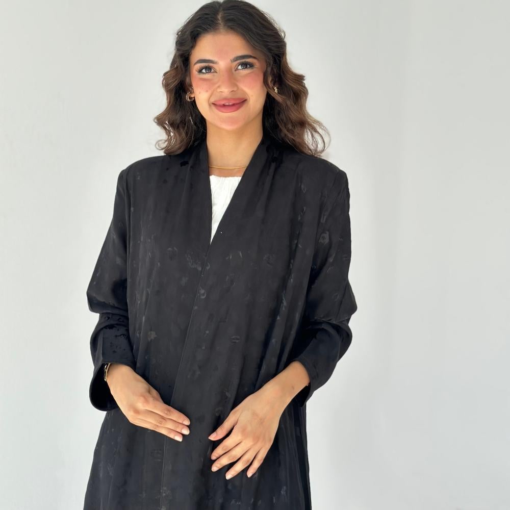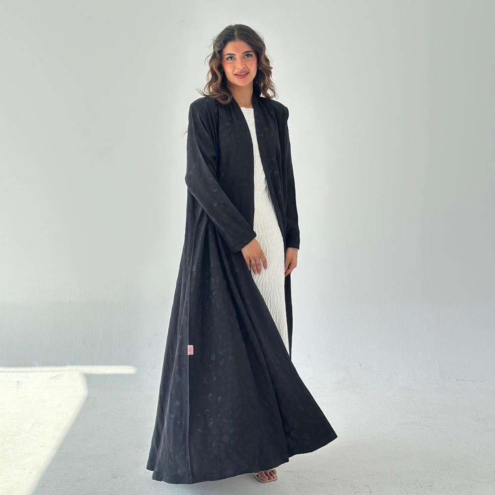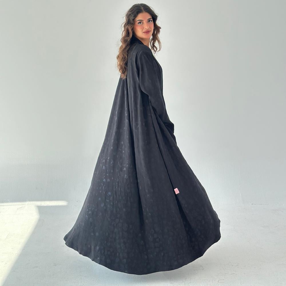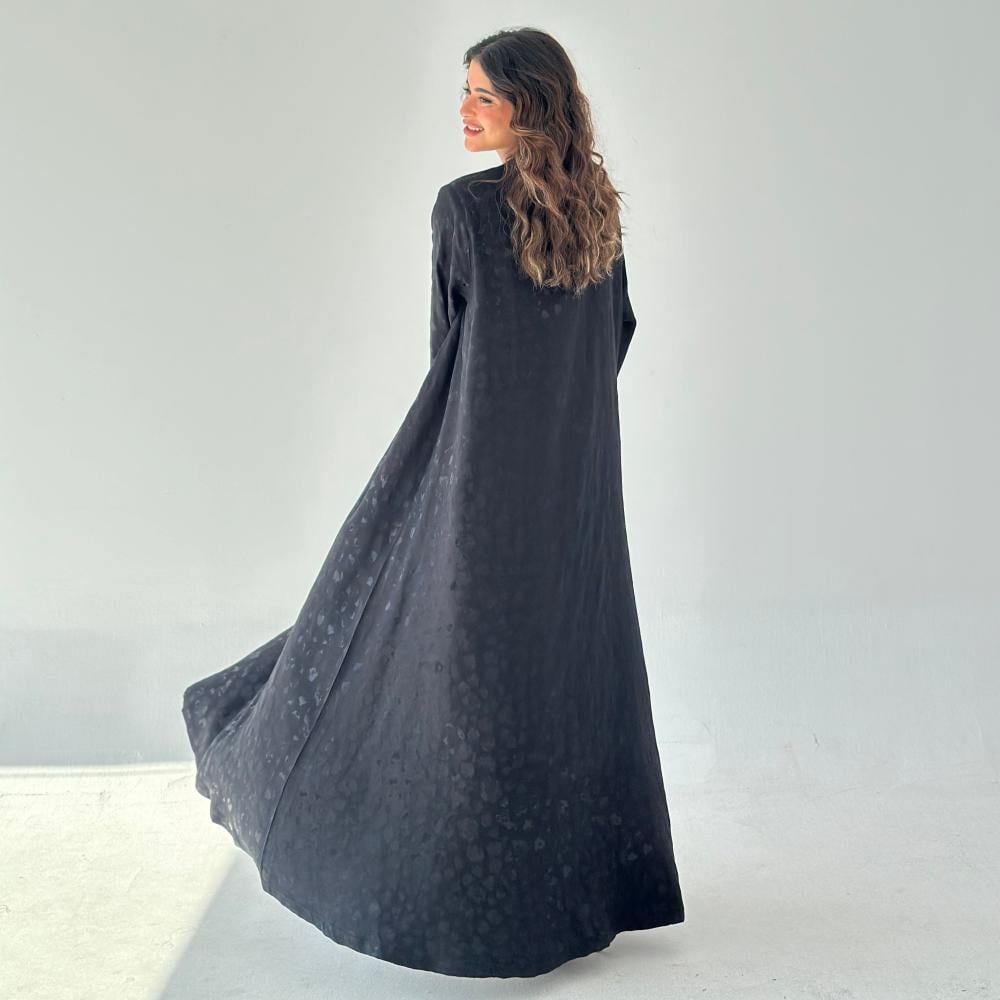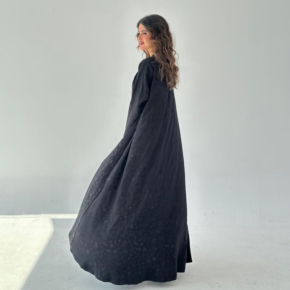 عبايه باللون الأسود بقصة كلوش من قماش الحرير الياباني