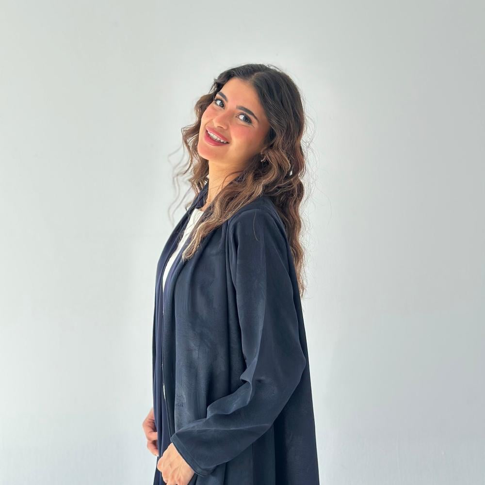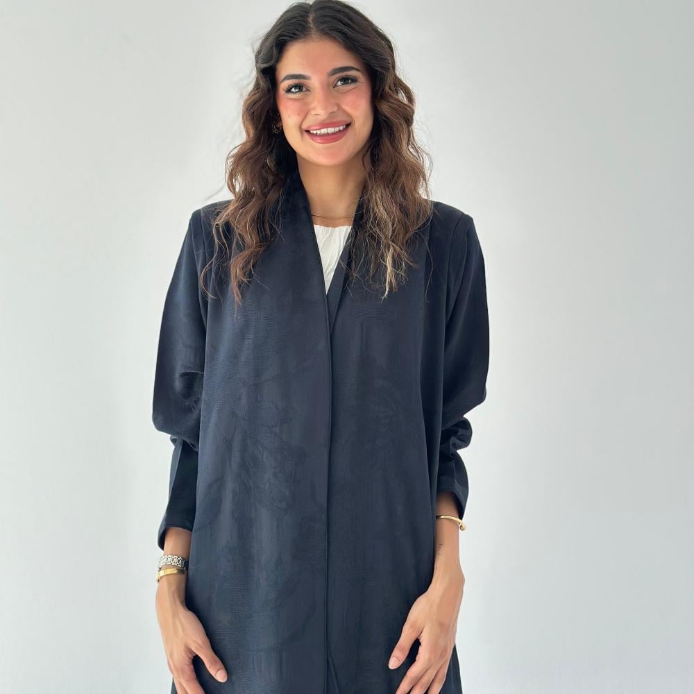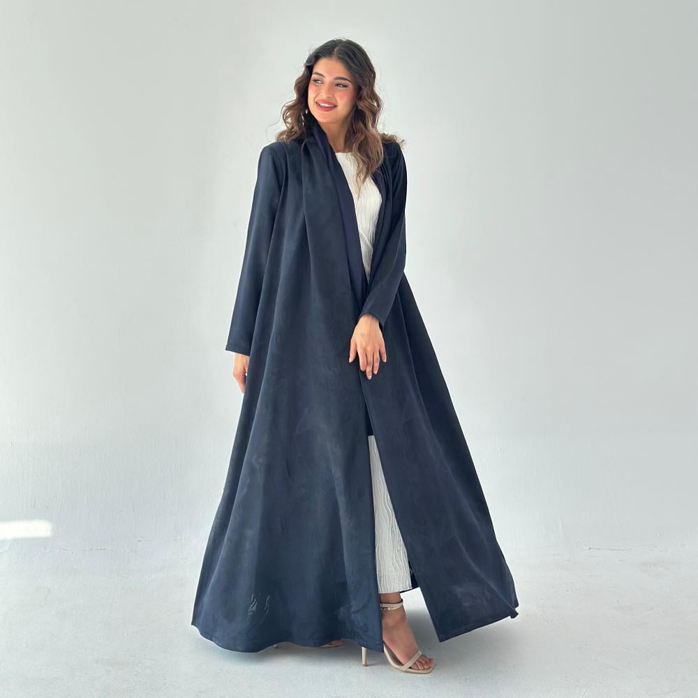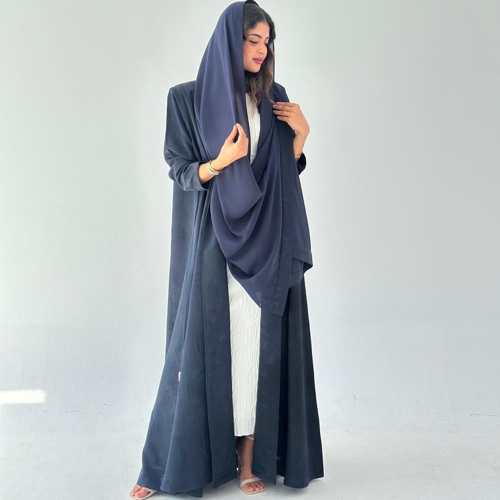 عبايه باللون الكحلي من قماش حرير الجاكار بقصة كلوش