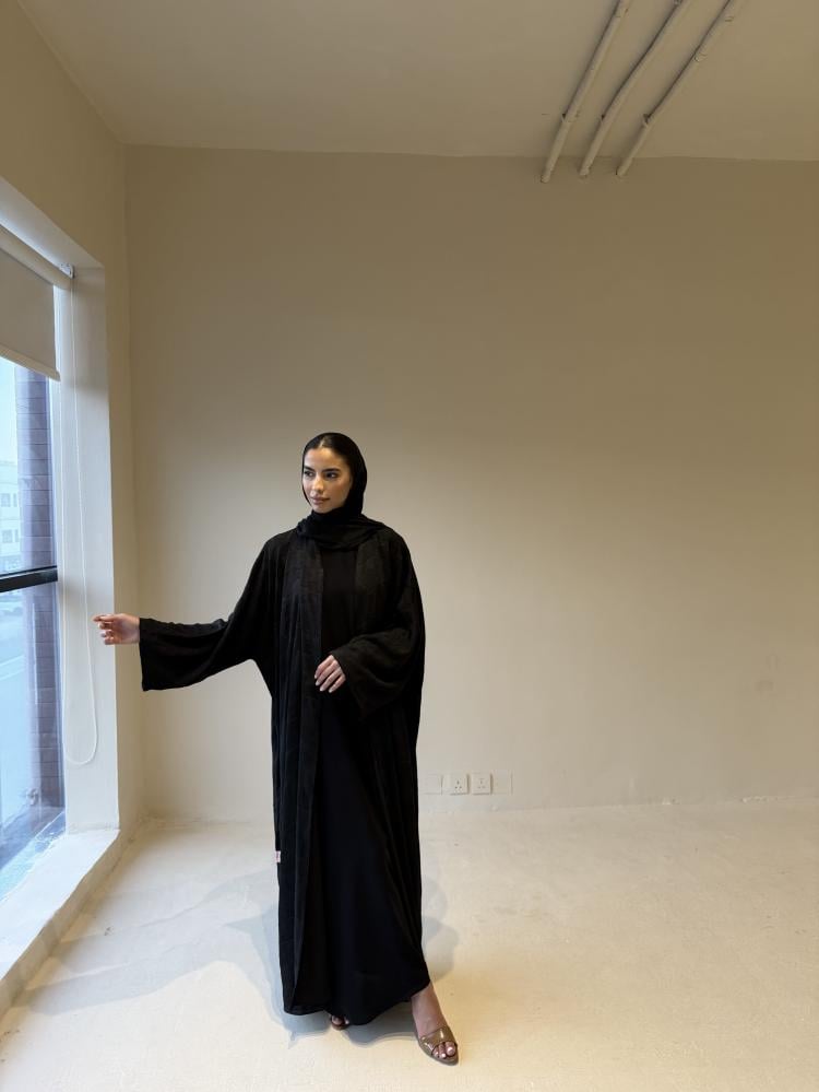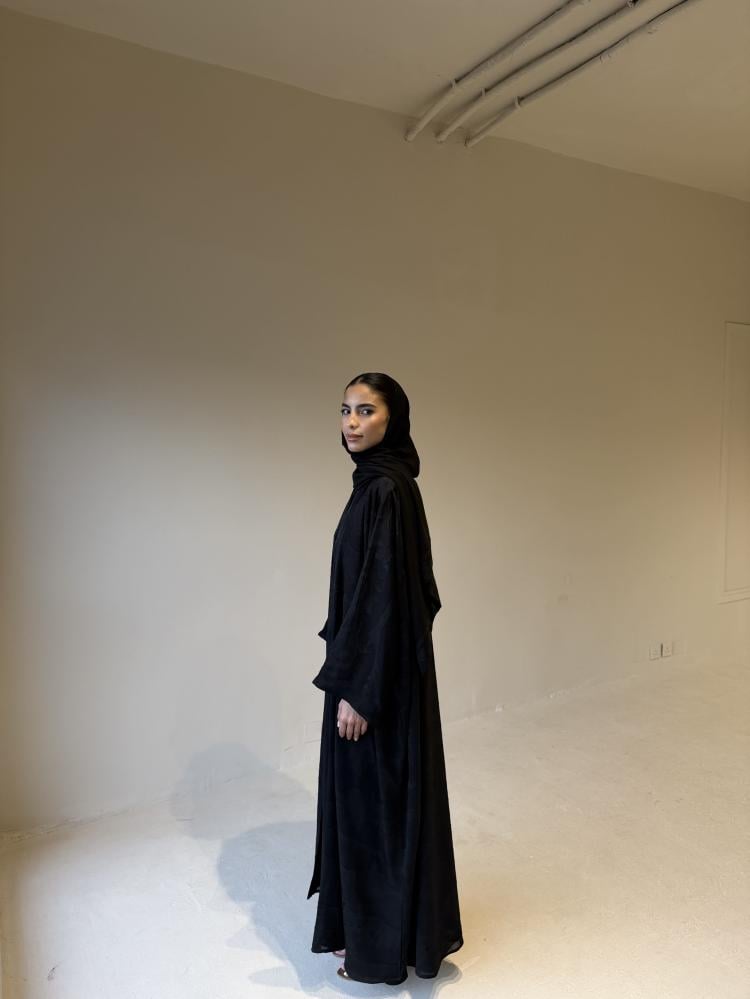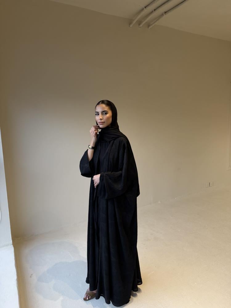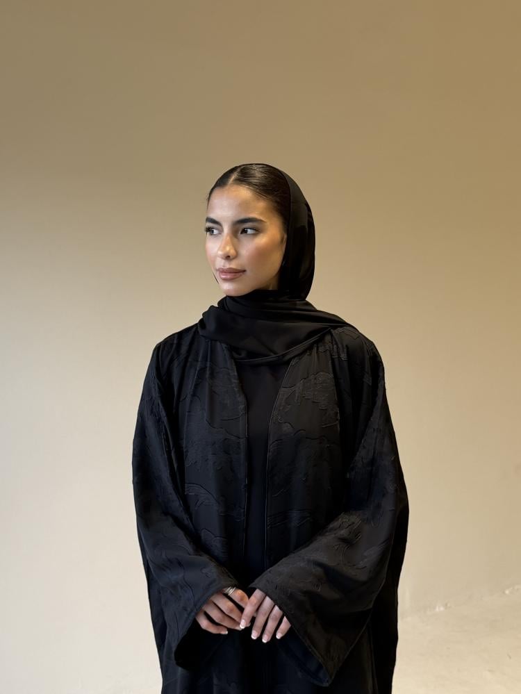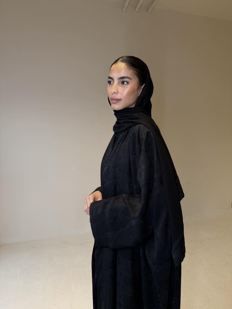 عبايه من قماش شيفون جاكار مبطن على الكم والطرحه